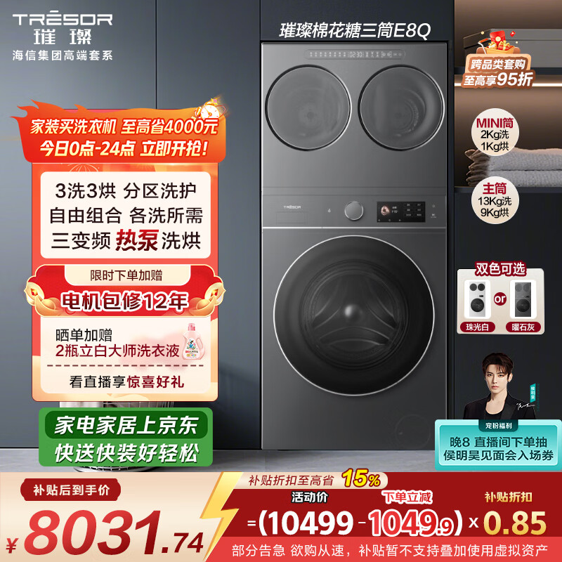 海信(Hisense)璀璨棉花糖热泵洗烘三筒洗衣机 分区洗全家筒活水健康自由组合 三桶WH130E8Q+WV20G-H以旧换新补贴