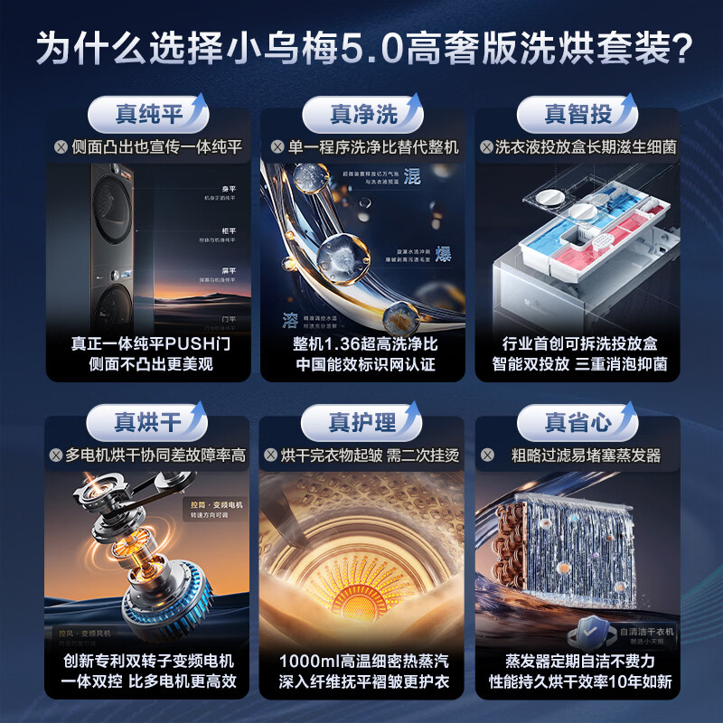 小天鹅(LittleSwan)小乌梅5.0高奢版 洗烘套装 12KG大容量 滚筒洗衣机全自动+双转子变频热泵式烘干机 TG12EK60+12K60