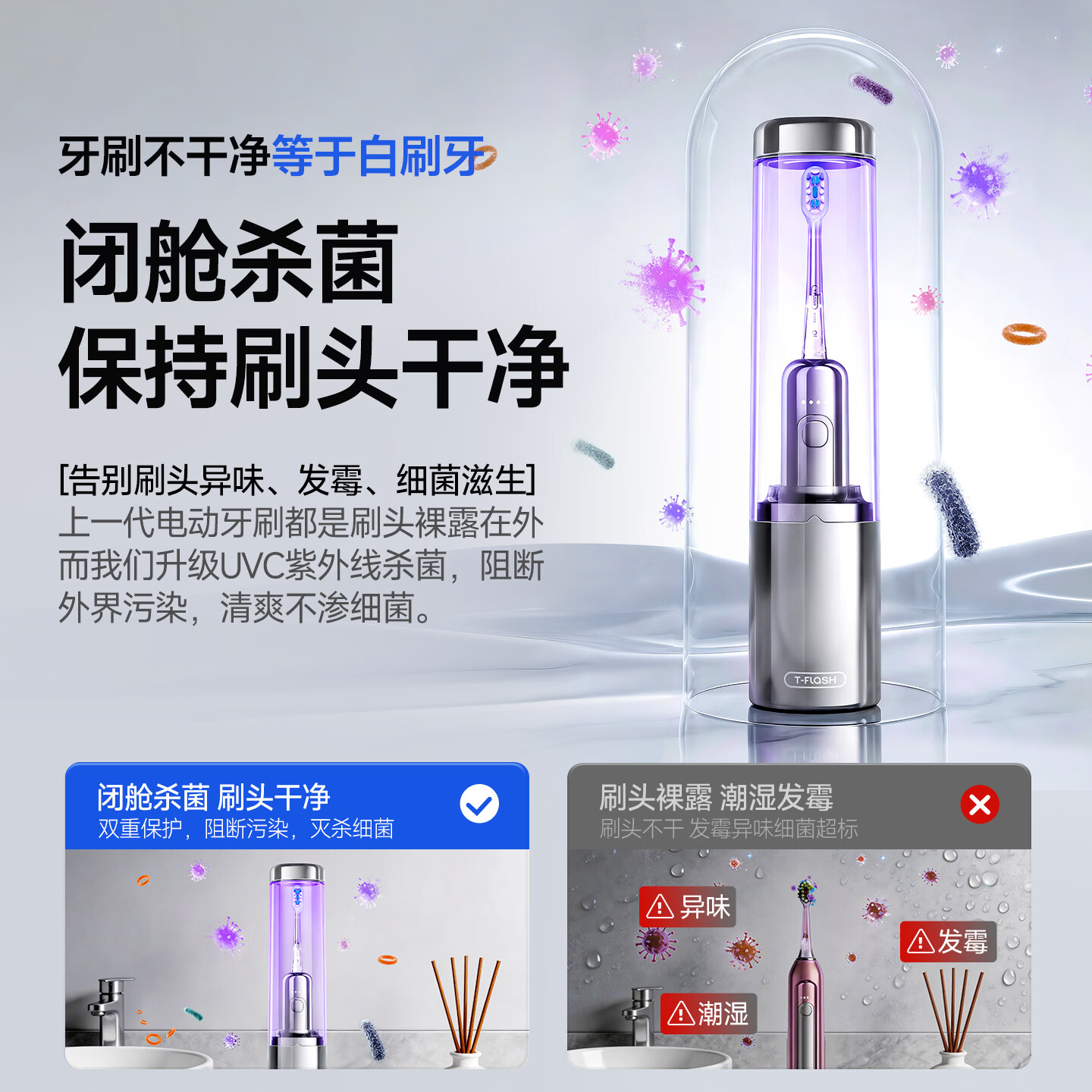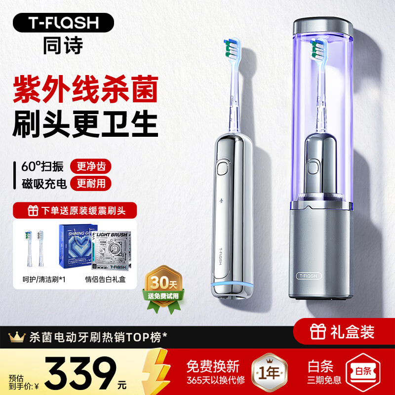 同诗(T-FLASH)艾齐扫振一体电动牙刷UV杀菌消毒不倒翁设计缓震刷头男女款礼盒生日礼物纪念日实用情侣礼盒