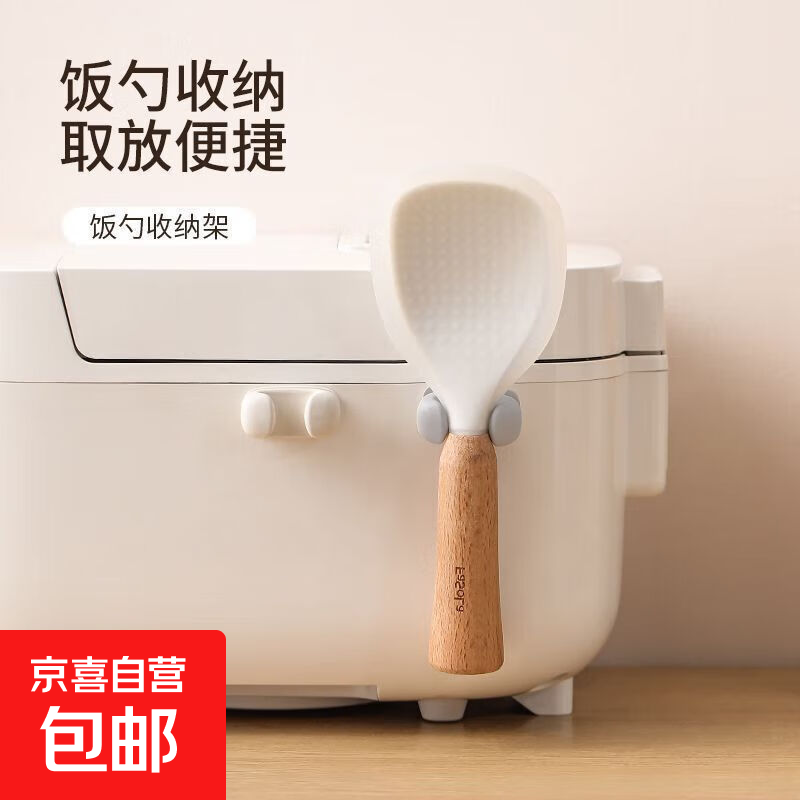 电饭煲配件饭勺固定器粘贴收纳神器壁挂米饭放勺子汤勺放置自粘厨房置物架硅胶挂钩夹置物架 【1个装】
