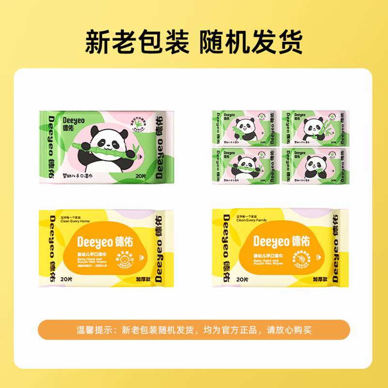 德佑婴儿手口湿巾20抽*10包 加厚宝宝湿纸巾小包便携新老包装随机发