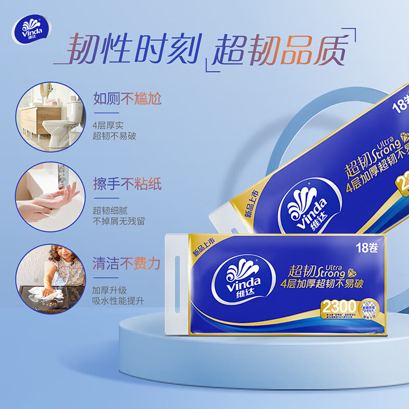 维达(Vinda)无芯卷纸 超韧4层128克*18卷 加厚升级 卫生纸厕纸 卷筒纸纸巾