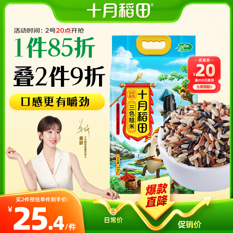 十月稻田 三色糙米 5斤 五谷杂粮米 粗粮粥饭 主食 新米 糙米 黑米 家庭装