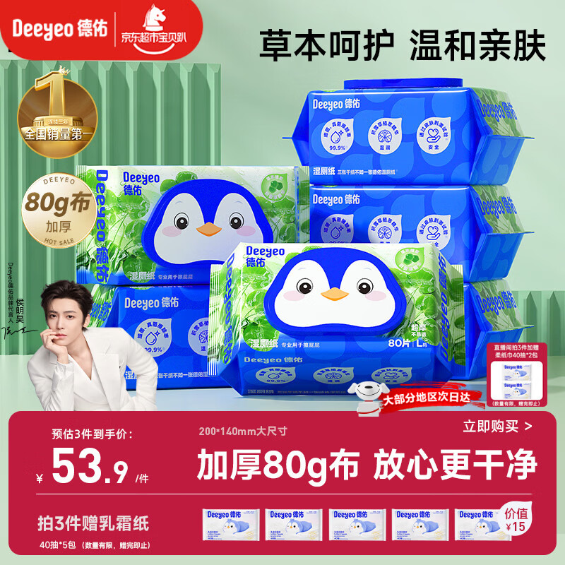 德佑积雪草湿厕纸80抽*6包家庭装 洁厕湿纸巾厕纸卫生纸可冲马桶