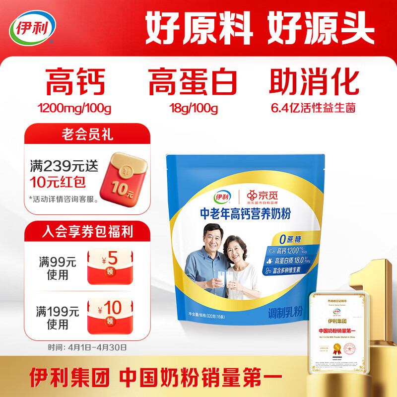 伊利中老年高钙营养奶粉 中老年奶粉 送礼送长辈 营养品早餐 320g