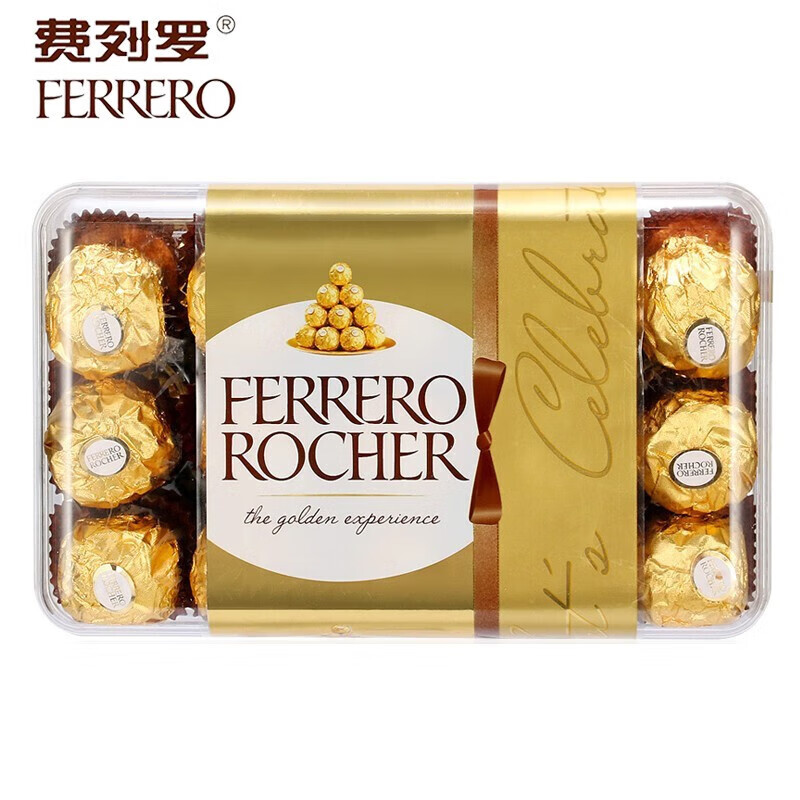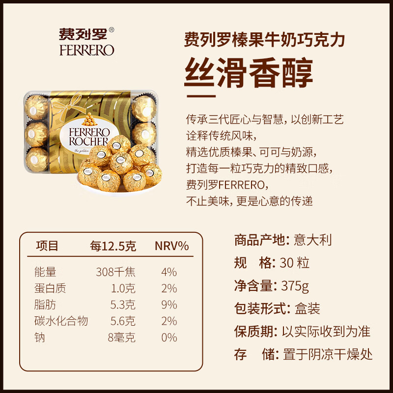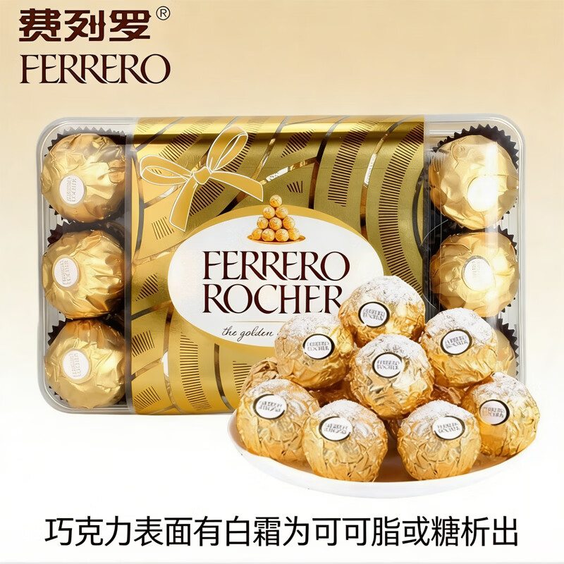 费列罗进口榛果巧克力30粒375g礼盒零食礼物送女友休闲零食