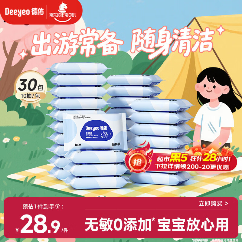 德佑婴儿手口湿巾 宝宝湿纸巾便携小包10抽*30包 独立包装便携出行