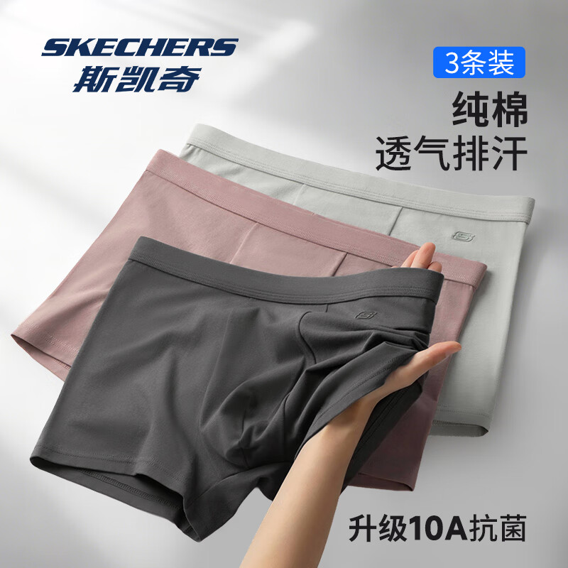 斯凯奇(Skechers)内裤男官方10A抗菌纯棉内裤男舒适透气平角裤运动四角裤男礼盒装