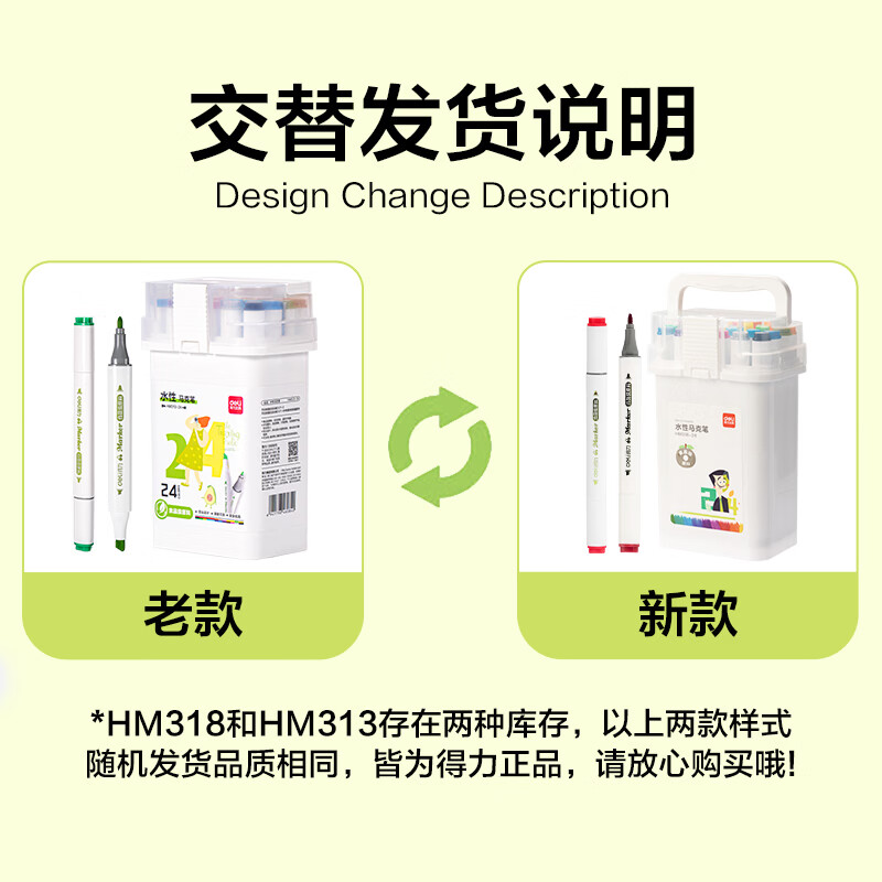 得力(deli)【京东金榜】24色食品级水性马克笔儿童粗细双头三角杆可水洗水彩笔学生美术元旦树画笔荧光笔美育
