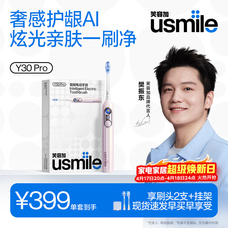 usmile笑容加智能电动牙刷 AI智能化新动力大摆幅 Y30Pro幻蝶粉 送女友女友 生日礼物