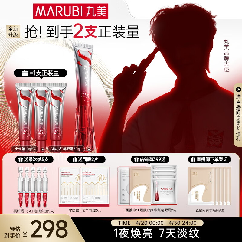 丸美全新S肽小红笔眼霜30g抗皱淡黑眼圈带按摩头生日礼物[合伙人同款]