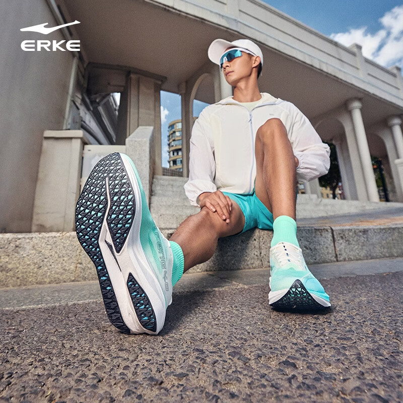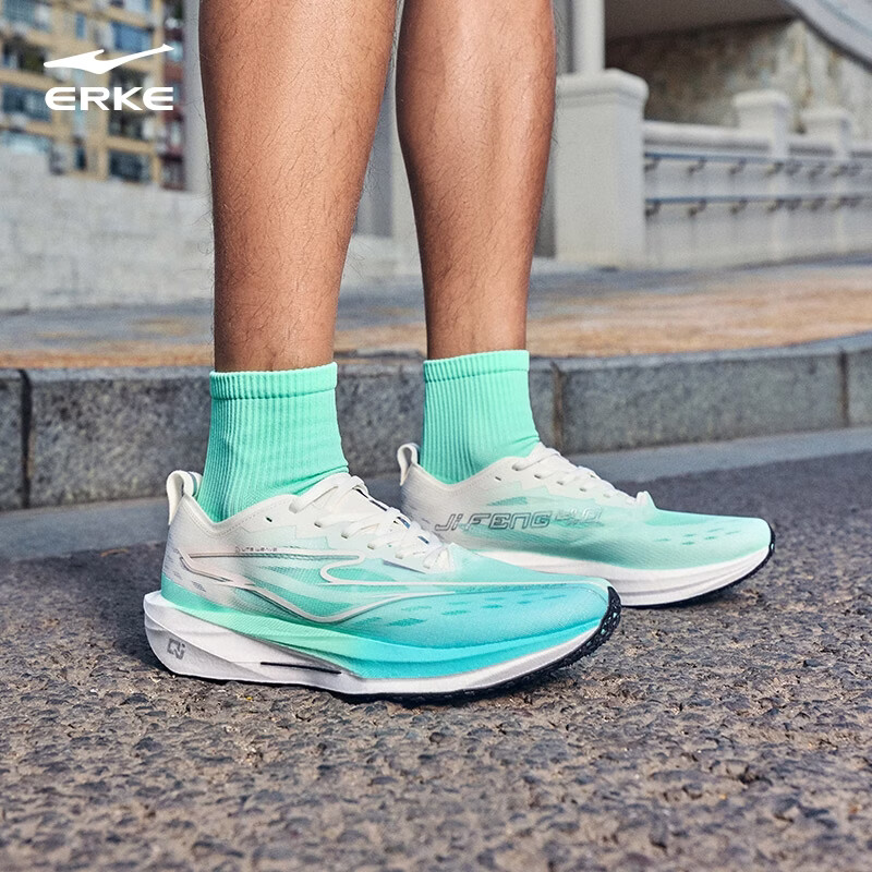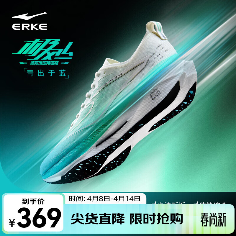 鸿星尔克极风4跑步鞋男专业运动鞋26春夏季新品竞速训练跑鞋体考体测男鞋 【青出于蓝】微晶白/青竹色 -男 42