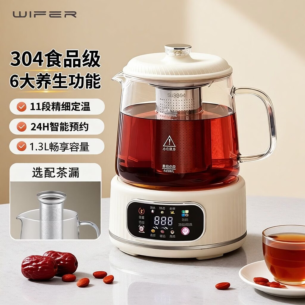 英国2026新款养生壶全玻璃煮茶壶炖煮一体多功能烧水壶泡奶迷你恒温壶煮茶器家用电热水壶泡奶神器 清洁杯刷【没有壶】 0L 养生壶带滤网