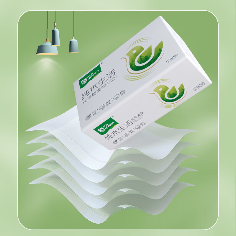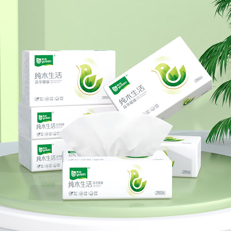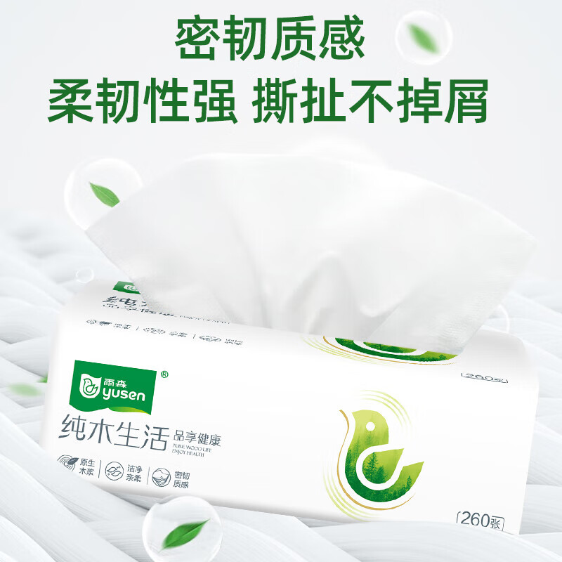 雨森(YUSEN纯木生活抽纸面巾纸260张/包擦手纸纸巾 5层 260张*6包