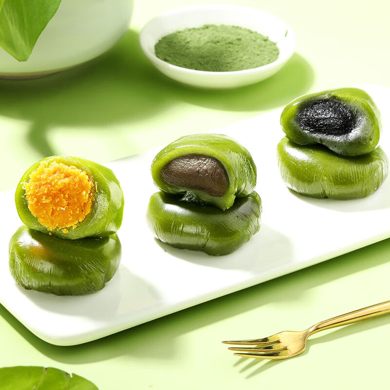 味滋源 艾草青团300g袋装50g*6枚清明果蛋黄肉松味特产零食麻薯糯米团子
