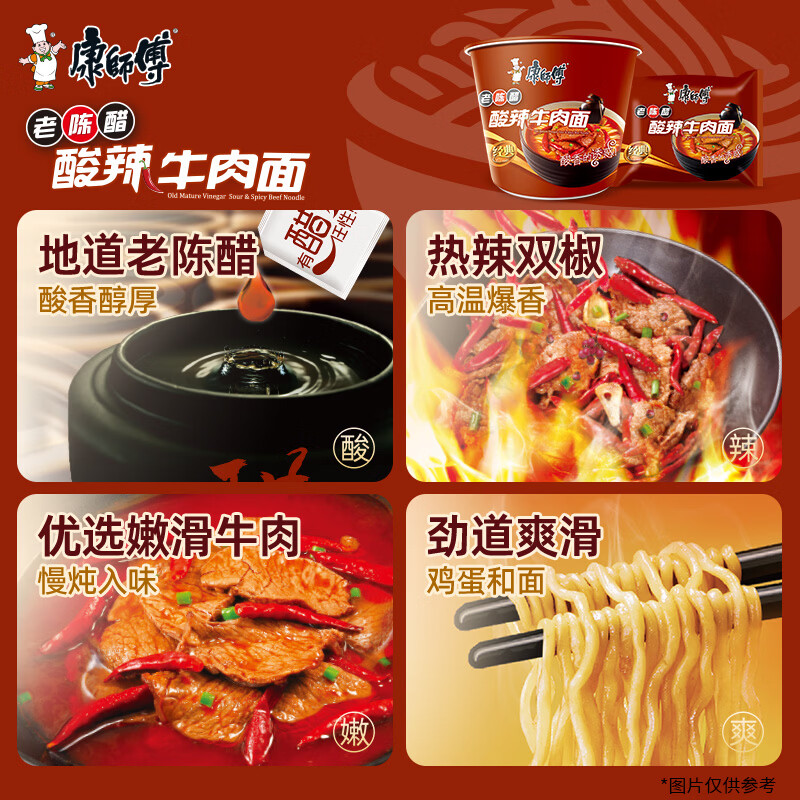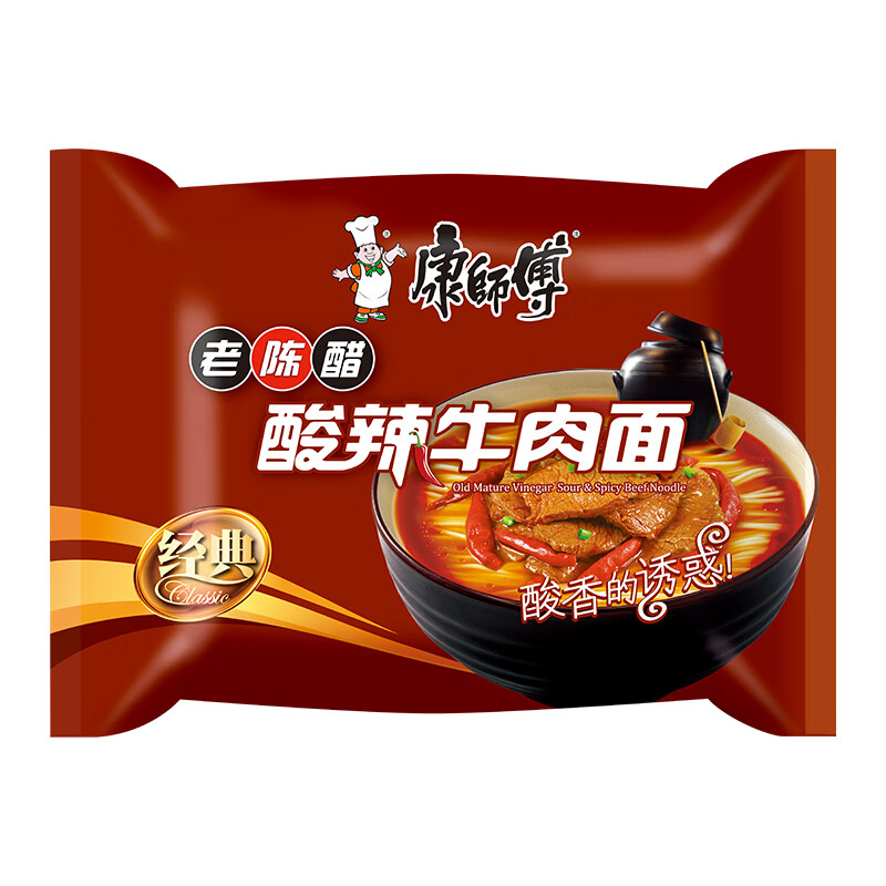 今日推荐:康师傅 方便面 经典老陈醋酸辣牛肉面五连包110g*5 泡面袋装 方便食品