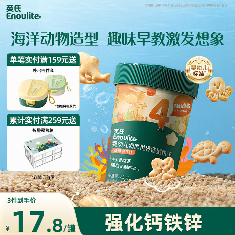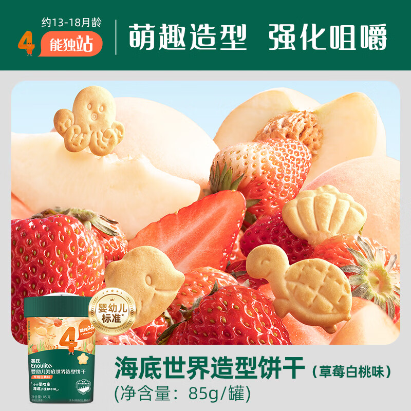 英氏(Engnice)婴幼儿海底世界饼干草莓白桃味 婴儿零食辅食营养饼干宝宝零食85g