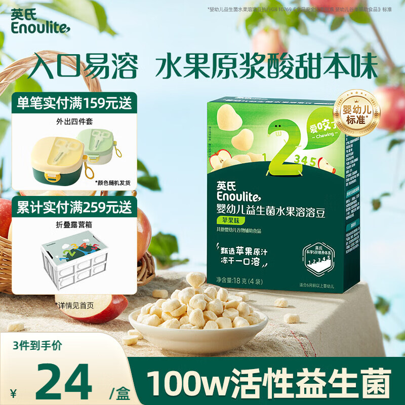 英氏(Engnice)英氏婴幼儿益生菌溶豆苹果味 宝宝婴儿零食辅食18g 6个月以上