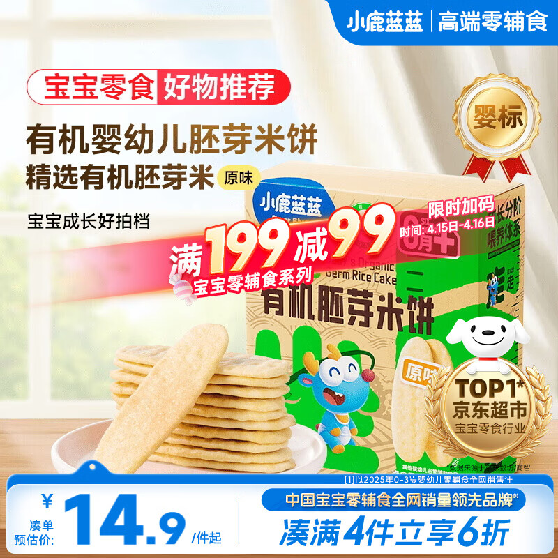 小鹿蓝蓝婴幼儿有机胚芽米饼宝宝儿童零食磨牙饼干辅食原味41g 6月+