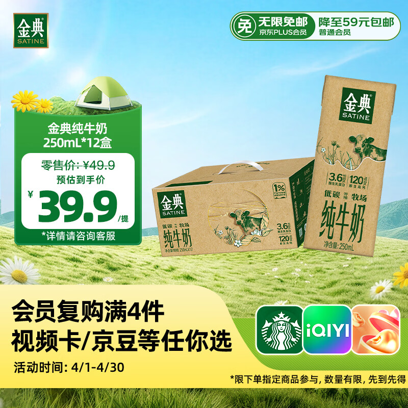 伊利金典纯牛奶 250ml*12盒 3.6g乳蛋白原生高钙 礼盒装
