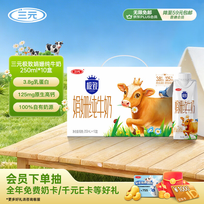 三元极致娟姗纯牛奶整箱250ml*10盒 整箱礼盒【新老包装随机发货】
