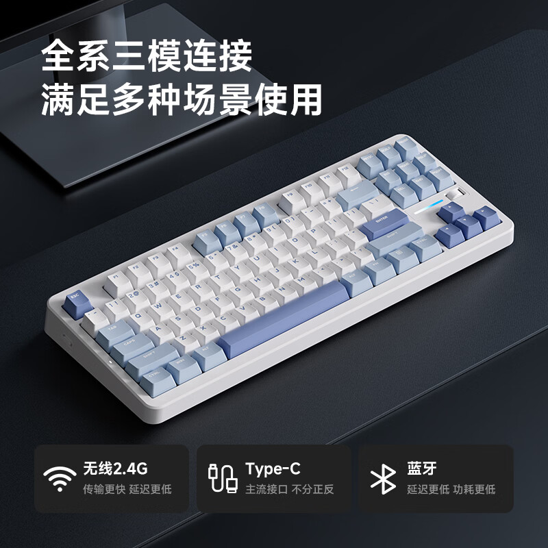 迈从(MCHOSE)G87 V2三模旋钮无线机械键盘电竞游戏客制化有线/蓝牙87键配列gasket结构全键热插拔笔记本办公 G87 V2 白色 快金轴【三模+旋钮】