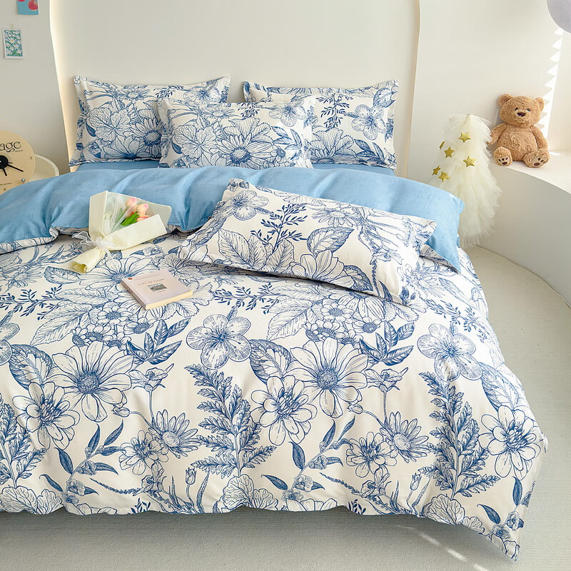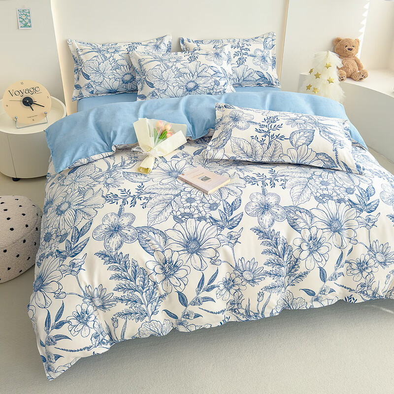 多兰诗(Duolanshi)春夏磨毛四件套 斜纹印花卡通套件被套床单宿舍四季床上四件套 花的旅行 1.8米 床单款 /被套180*220 四件套