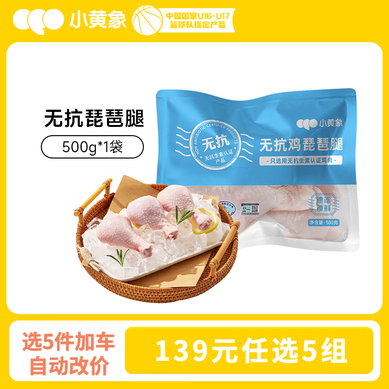 小黄象【139元任选5组】鸡排奥尔良鸡翅半成品生鲜鸡胸肉生鲜鸡腿 无抗琵琶腿500g