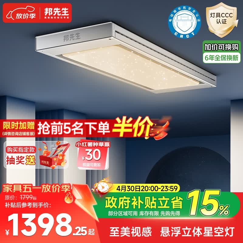 邦先生电动晾衣架隐藏式智能阳台晒衣架【M66PRO】星空灯+离线语音