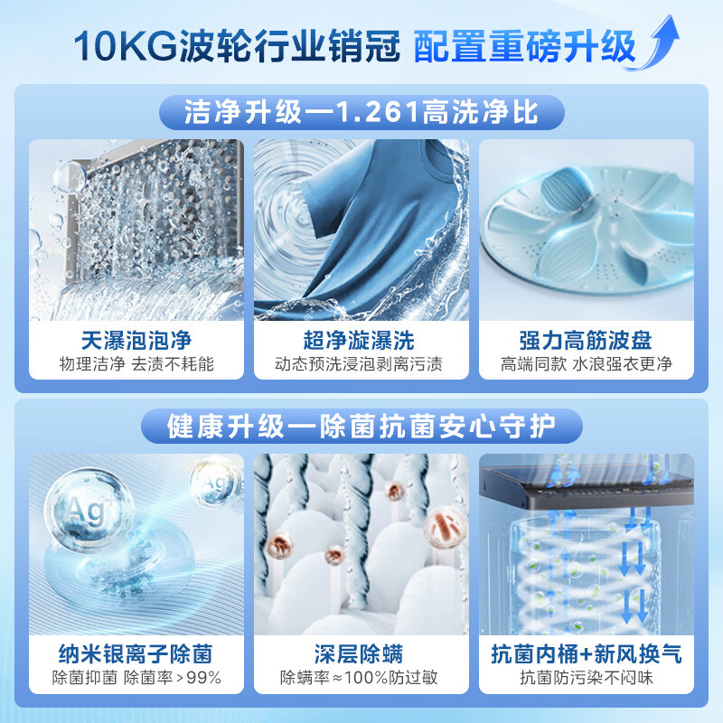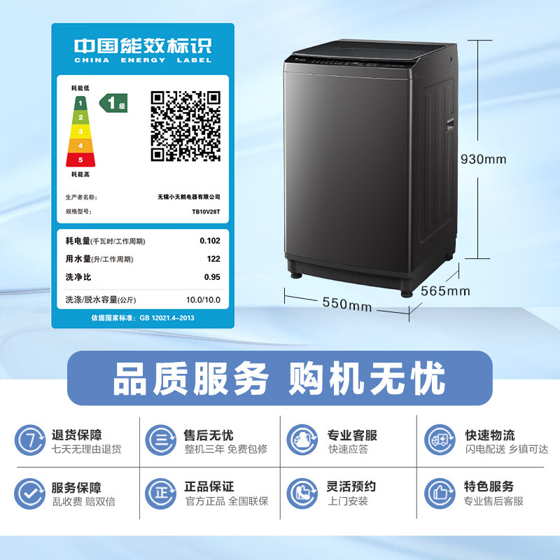 小天鹅(LittleSwan)波轮洗衣机小型全自动家用 10KG TB10V28T 以旧换新 京东自营 一级能效 宿舍租房神器