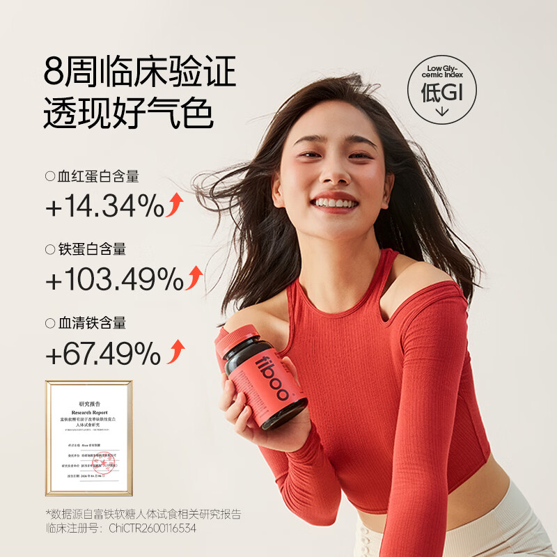 FIBOO她练元气铁富铁软糖补养女性孕妇血红素铁软糖剂型 莓果味60粒